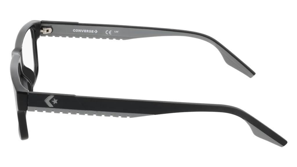CV 5123 Converse glasses in colour 001 Black. Rectangle style Converse prescription glasses featuring the Converse logo on each side.